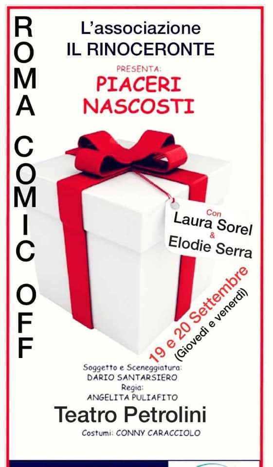 Piaceri Nascosti 19-20-9- 2019 Teatro Petrolini settembre 16, 2019 561 × 960 PIACERI NASCOSTI di Dario Santarsiero al Roma Comic Off ed. 2019 – per la regia di Angelita Puliafito – Recitano Laura Sorel ed Elodie Serra