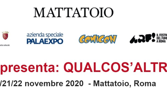 Amici di DETTI E FUMETTI anche quest’anno ARF ci sarà! Sarà QUALCOS’ALTRO .Dopo l’annullamento di ARF! il Festival del Fumetto di Roma – a causa dell’emergenza Coronavirus – rimandando la sesta edizione a maggio 2021, gli organizzatori (definiti da sempre ARFers) tornano al Mattatoio, il Museo d’arte contemporanea di Testaccio, per presentare da venerdì 20 novembre a domenica 22 QUALCOS’ALTRO, un intero weekend di mostre dedicate al fumetto, concepite come esperienza totalizzante e immersiva.