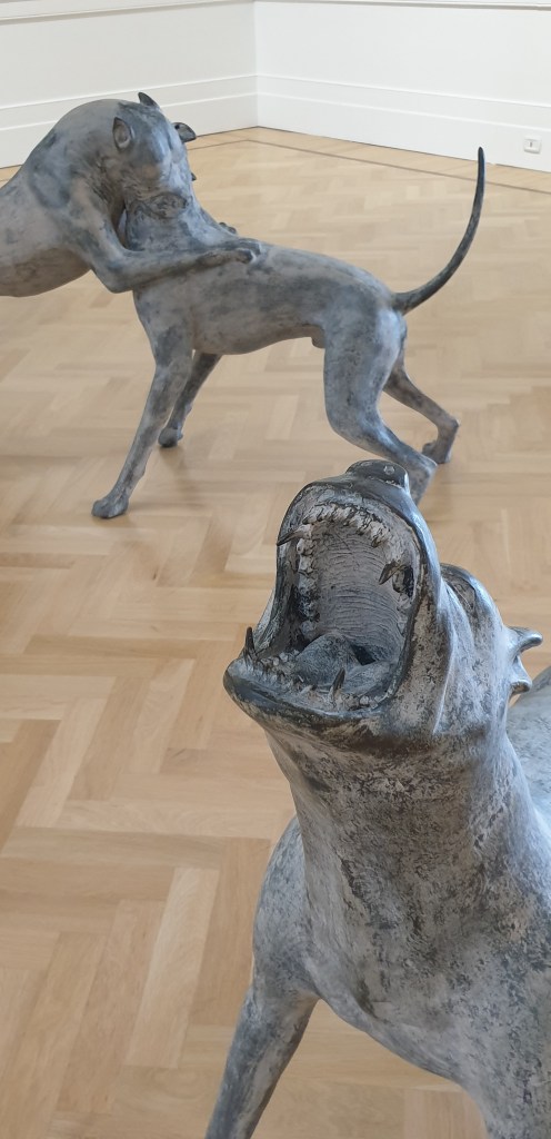 Ad attenderci nella sala successiva dei mastini in ferro che si sbranano l’uno con l’altro a testimoniare la bestialità della guerra.