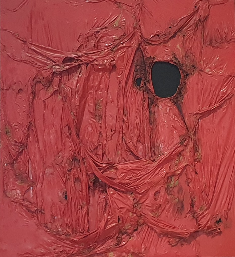 La seconda guerra mondiale sublimata nelle installazioni di Alberto Burri, medico chirurgo divenuto pittore durante la prigionia (deportato in Texas) che ha sapientemente rappresentato gli orrori della guerra nelle sue opere.