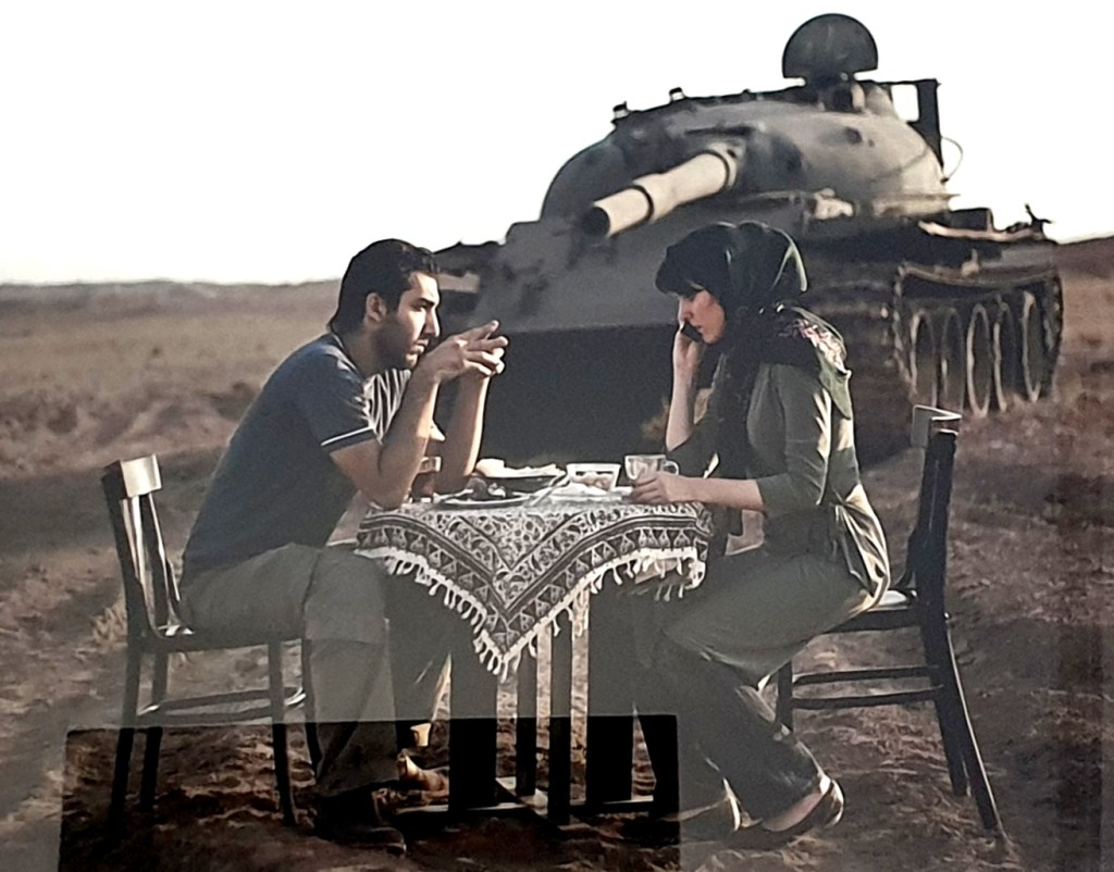 Nella prima sala ci accolgono le foto di Gohar Dashti (2008) che ritraggono scene familiari all’interno di un incredibile scenario di guerra.