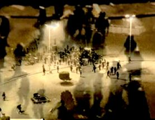 Il montaggio stroboscopico delle immagini crea uno spazio irreale, un campo di battaglia dove manifestanti e forze dell’ordine sembrano confondersi in preda alla violenza. L’artista conferisce così una nuova realtà alle immagini e sfidando ogni limite di percezione. Cerca di esplorare le analogie tra la psiche umana e lo scorrere della immagini in movimento