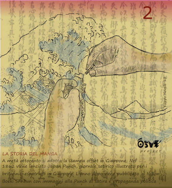 E’ del 1862 la pubblicazione del primo giornale occidentale in Giappone, il Japan Punch (redatto per il pubblico inglese che viveva di commercio nell’arcipelago), il cui stile verrà ripreso l’anno seguente dal Nihon Boeki Shubun, il primo giornale giapponese con stampa off set (appena introdotta in Giappone) e ricco di immagini alla Punch.